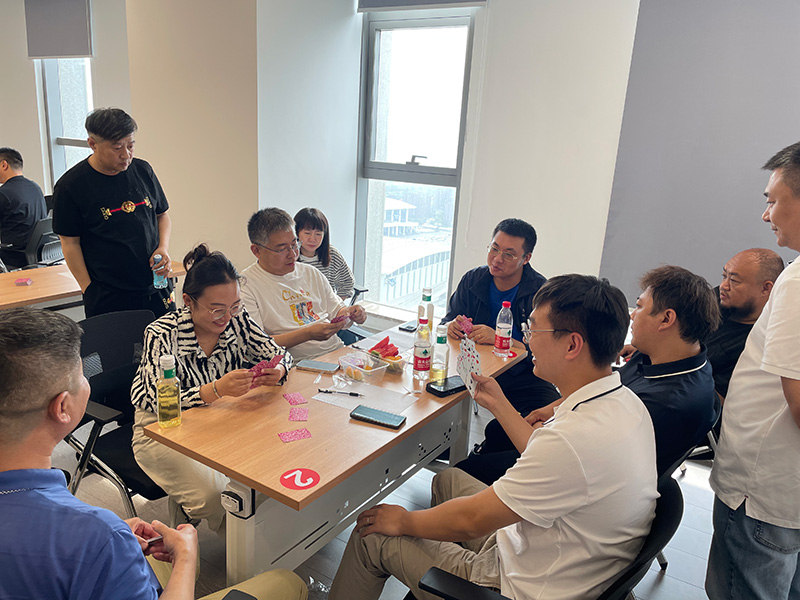 “楚河對漢界、摜蛋斗地主”。棋牌比賽中,大家“切磋棋藝,以牌會友”,個個沉著冷靜,思路敏捷。在楚河漢界之間縱橫車馬、調(diào)兵遣將;在方寸撲克之中,聚精會神,沉著應(yīng)戰(zhàn),憑借默契的配合,讓“戰(zhàn)局”高潮迭起。
