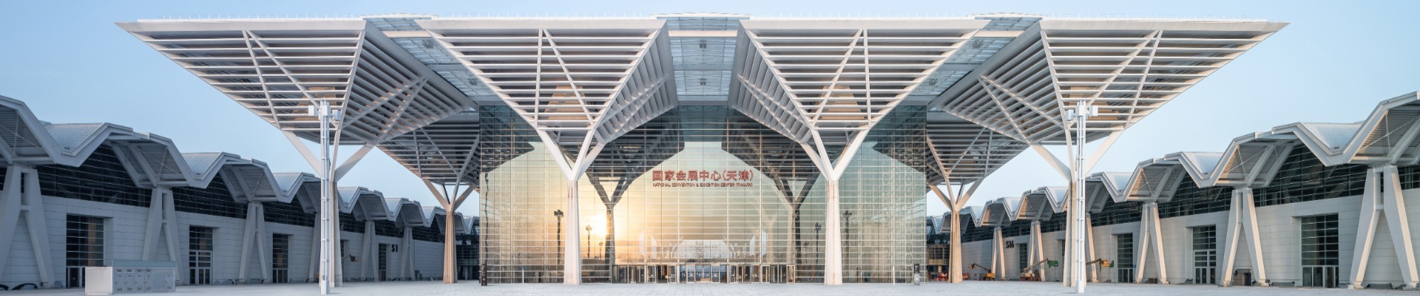 國家會(huì)展中心(天津)體量龐大、造型規(guī)整,集展覽、會(huì)議、商業(yè)、辦公、酒店功能于一體。總建筑面積約134萬平米,其中室內(nèi)展覽面積約40萬平米, 室外展覽面積約15萬平米,為中國展覽面積最大、使用體驗(yàn)最佳的會(huì)展綜合體。項(xiàng)目分兩期建設(shè),一期工程總建筑面積約80萬平米,室內(nèi)展覽面積約20萬平米,總停車位數(shù)5000余個(gè)。