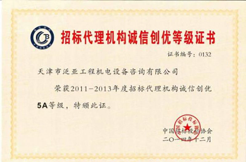 2011-2013年度招標代理誠信創優5A級企業
