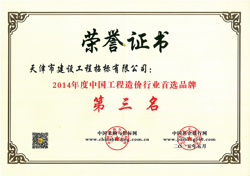 14年度造價行業(yè)首選品牌第三名