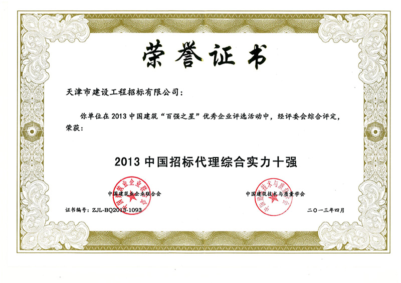 招標代理綜合實力十強2013