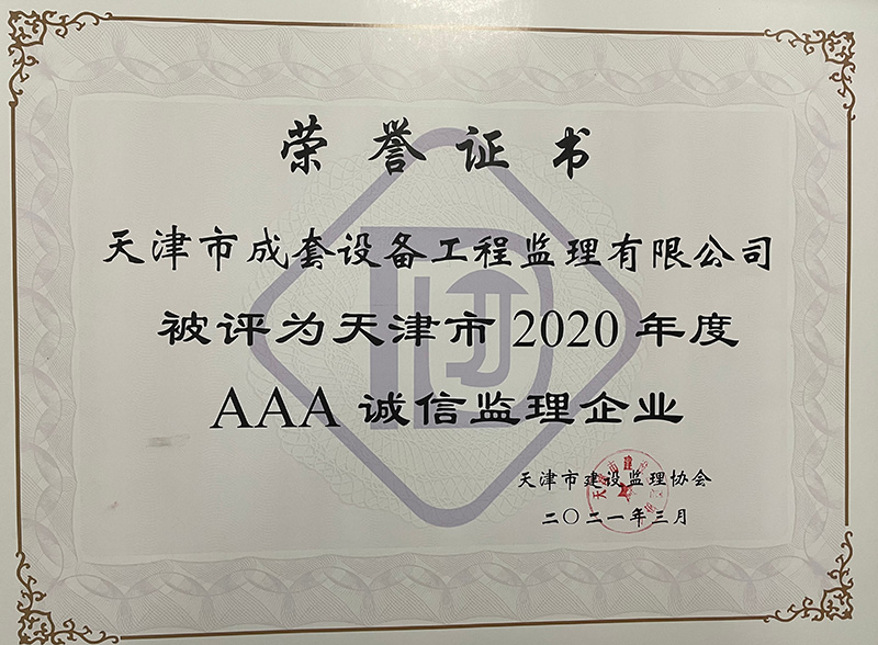 天津市2020年度AAA誠信監理企業