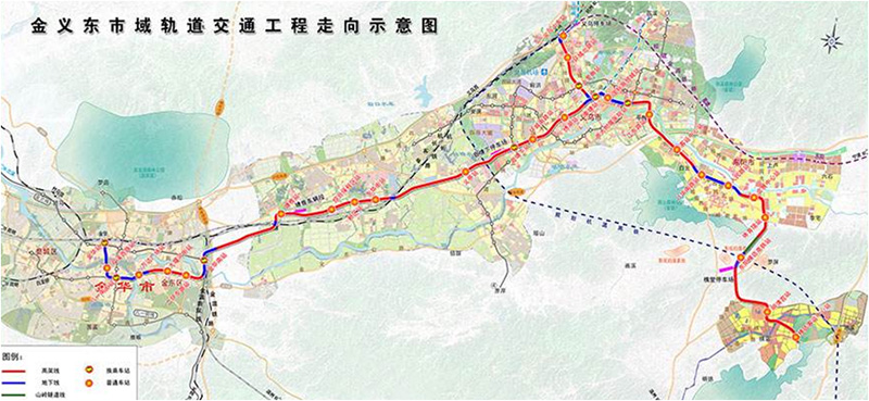 項(xiàng)目建設(shè)規(guī)模由金華—義烏和義烏—東陽(yáng)兩條線路組成,兩線在秦塘站呈雙島四線同站臺(tái)換乘。其中,金華—義烏線起于金華火車(chē)站,沿雙龍街-李漁路-李漁東路-站前路-金義新區(qū)新城路-規(guī)劃國(guó)貿(mào)大道二期-國(guó)貿(mào)大道一期,止于義烏秦塘站;義烏—東陽(yáng)線起于義烏火車(chē)站,沿宗澤路-國(guó)貿(mào)大道-商城大道-陽(yáng)光大道-世茂大道-興平路-迎賓大道-S218-鎮(zhèn)北路-萬(wàn)盛北街-橫店環(huán)城東路,止于橫店客運(yùn)中心。兩條線路總計(jì)全長(zhǎng)約107.18公里,共設(shè)站31座(其中地下站13座,高架站18座),設(shè)一段三場(chǎng),建設(shè)地址位于金華地區(qū)(含金華市婺城區(qū)、金東區(qū)、義烏市、東陽(yáng)市),計(jì)劃于2021年建成。